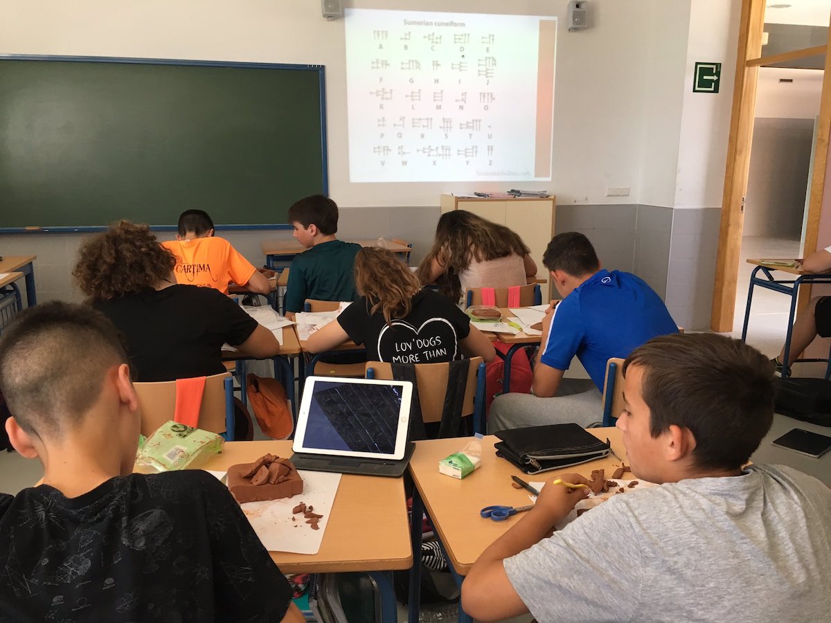 Comenzamos a abordar la unidad de la antigua Mesopotamia y el antiguo Egipto, pero los días para final de curso se acercaban, y aún quedaba temario por afrontar. Teníamos que hacer un proyecto pero que no nos llevara más de uno o dos días en hacerlo, y en este caso, a Rocío y gracias a que vimos unas imágenes que nos compartieron en Twitter (ahora mismo no recuerdo quien fue, intento buscarlo pero no doy con ello, desde aquí te doy las gracias), se le ocurrió hacer tablillas cuneiformes con arcilla.
