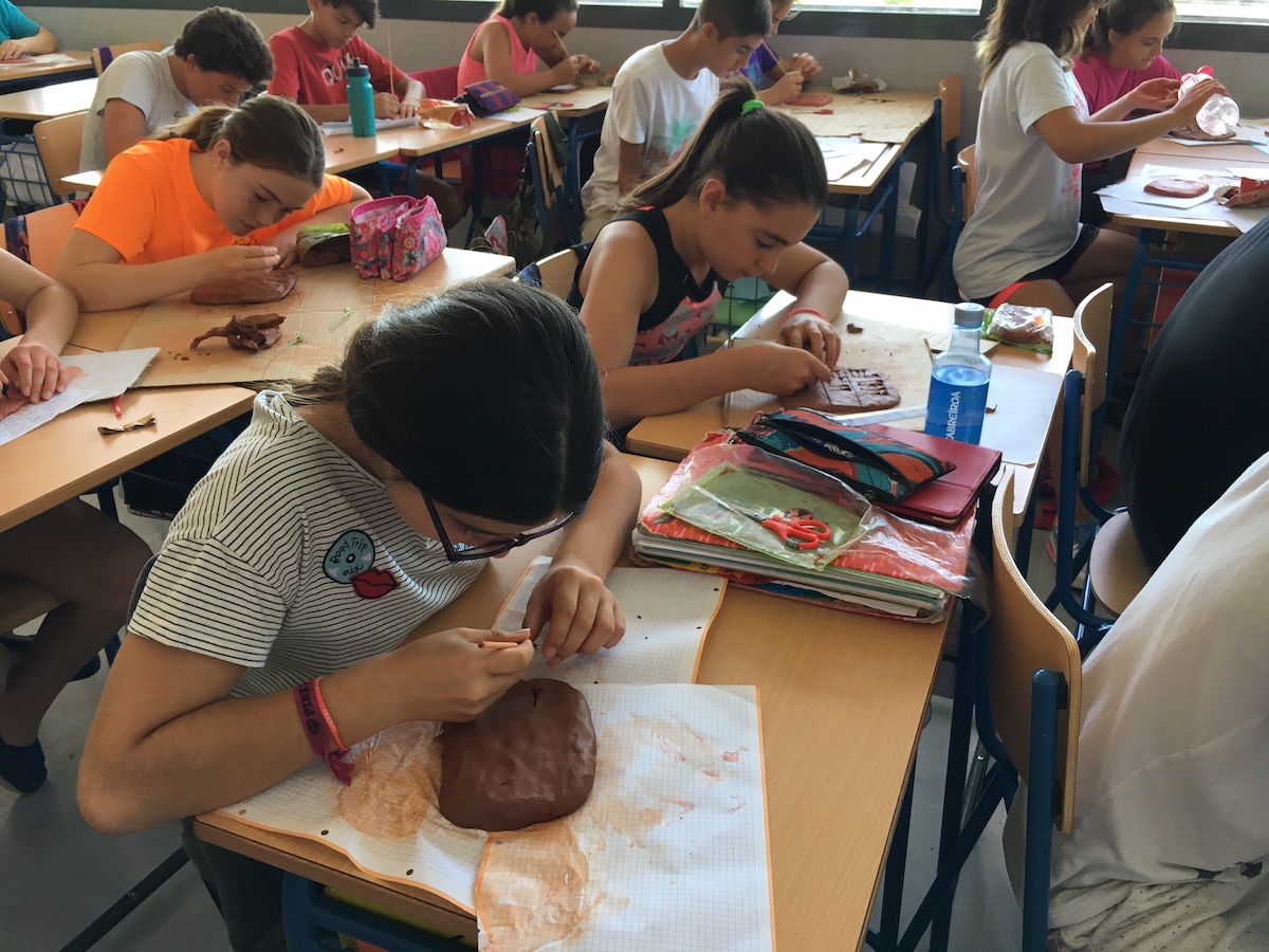 Cuando comenzamos a trabajar en clase el alumnado estaba muy nervioso, y tenía unas ganas locas de trabajar con la arcilla. Tras comprobar las dos en clase que cubrían las mesas para no mancharlas, empezamos a trabajar con las tablillas. Ambas controlamos en clase que todo fuera como debía. El primer error que cometían era que dibujaban en las arcillas trazos, en vez de aplastar la arcilla tal y como hacían los mesopotámicos. Una vez explicado el proceso seguían ¡manos a la obra!.