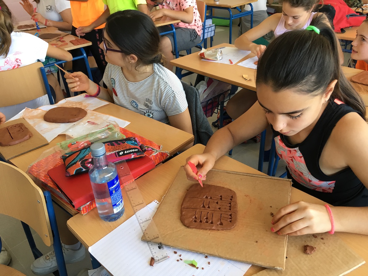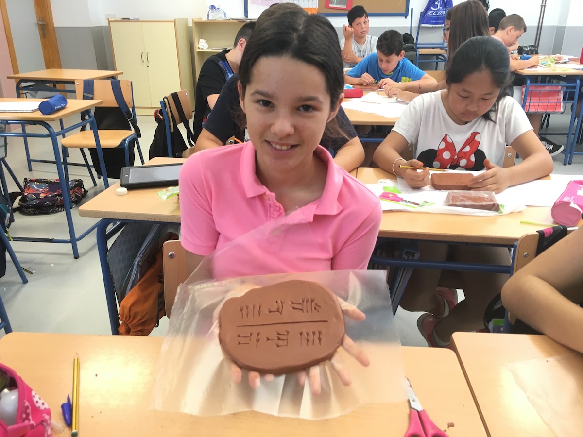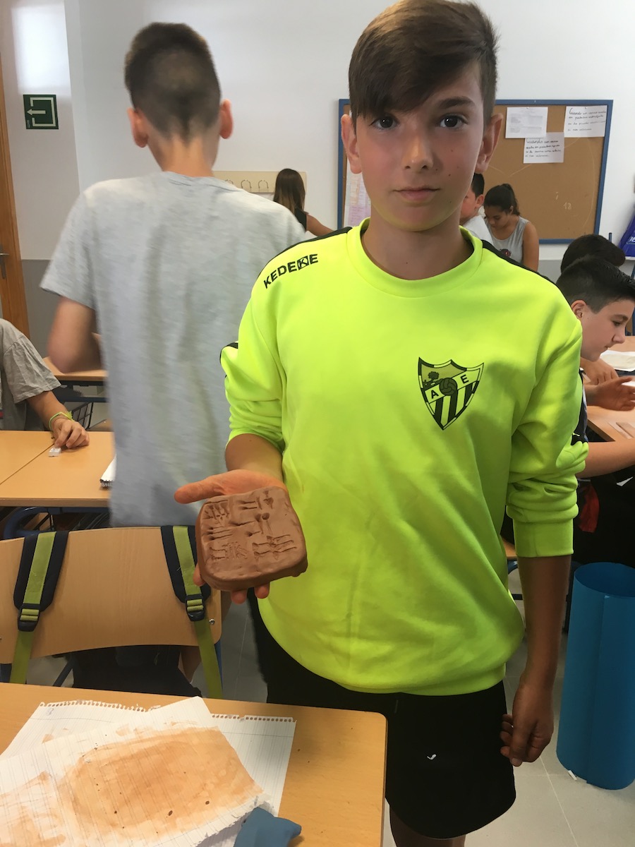 Posteriormente, dejamos secar las tablillas y así quedarían tal y como lo hacían los antiguos mesopotámicos. Así se llevarían un recuerdo, de la unidad que habían aprendido, a casa.