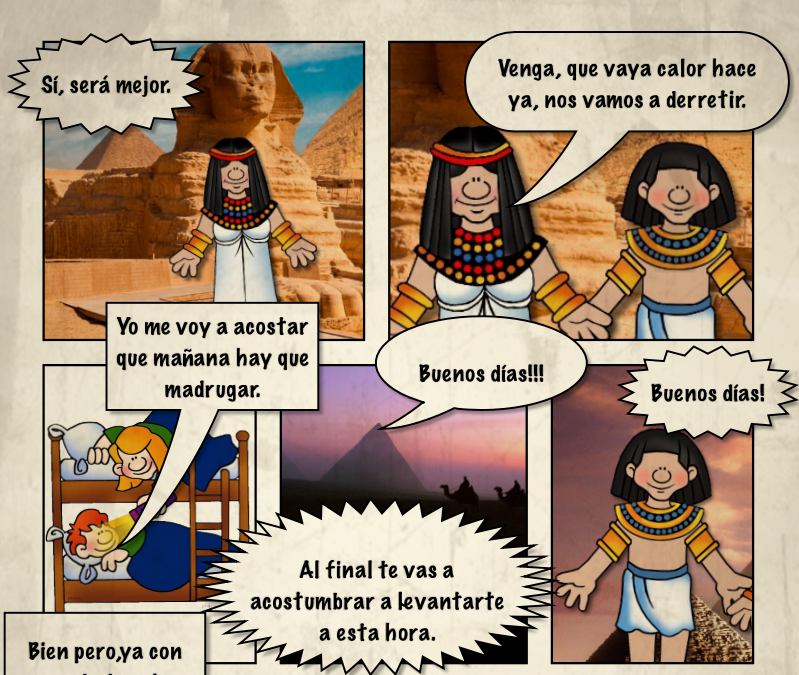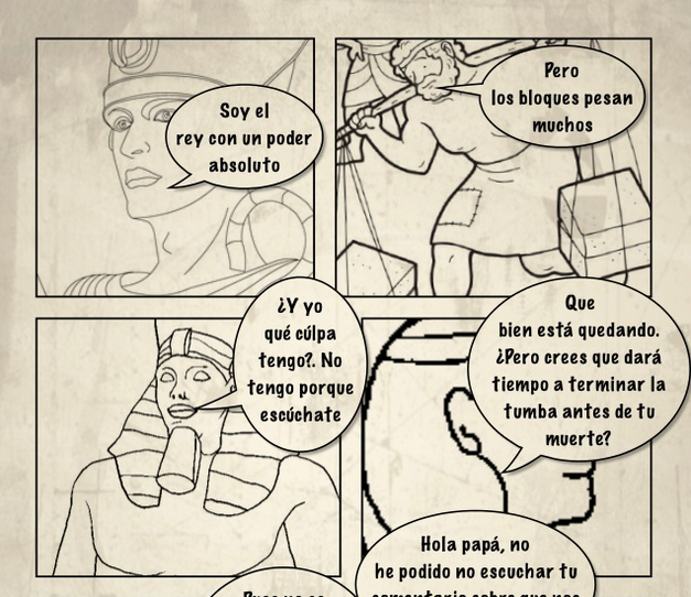 Continuando con los proyectos de este curso escolar en 1º de ESO, y el lío de fin de curso, no he podido publicar los últimos proyectos que he realizado, iré actualizando en este mes de julio. Tras ver la prehistoria y Stopmotion con el comienzo de la historia, después llegaron las civilizaciones Antiguas: Mesopotamia y Egipto es lo que normalmente se suele ver con el alumnado. El proyecto de Stopmotion nos había llevado bastante tiempo, y tenía planeado un gran proyecto con la Antigua Grecia (lo publicaré en estos días), así que planteé un proyecto de Cómic sobre estas dos antiguas civilizaciones.