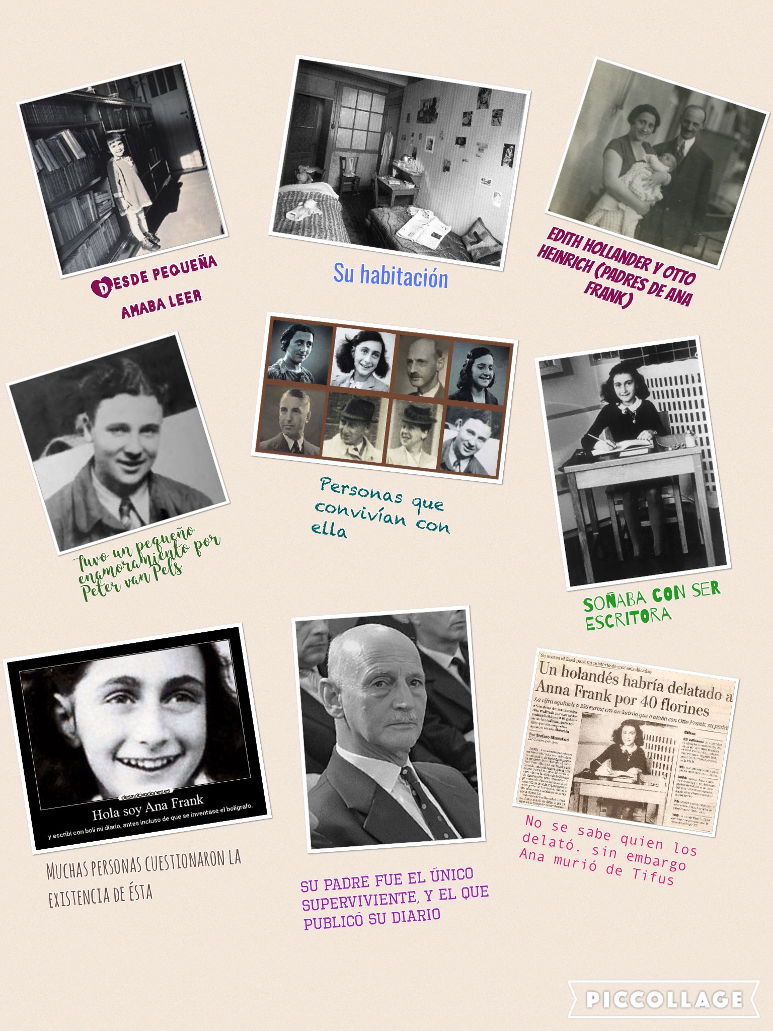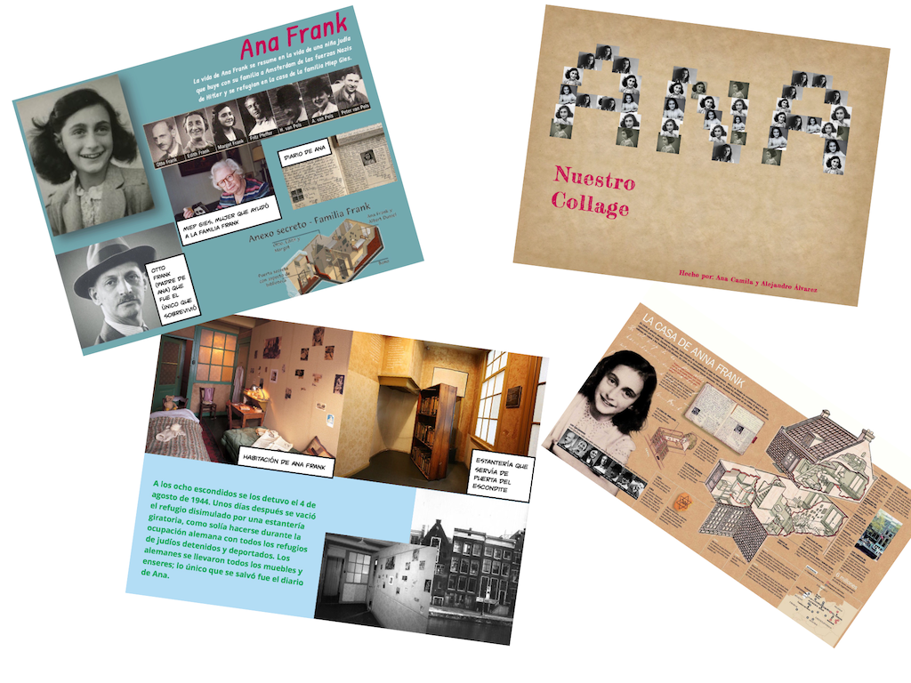 Aprendimos en común aún más de lo investigado con las exposiciones orales, el alumnado encontró muchísima información sobre la historia, más todo lo que les pude aportar con mi visita al museo este verano. Los resultados los puedes ver en todos en las imágenes de los collages que se encuentran en esta entrada, otros entregaron el collage en PDF que los tienes más abajo, y también dos grupos realizaron el collage en formato .epub que puedes descargarlos desde aquí. Sus resultados, para tener solamente una hora de clase a la semana, fueron muy sorprendentes. Finalmente la mayoría del alumnado, en el proyecto de lectura del centro, han decidido leerse el libro de Ana Frank, movidos por la curiosidad de todo lo aprendido en el proyecto a partir de esta película, que espero, recuerden por mucho tiempo.