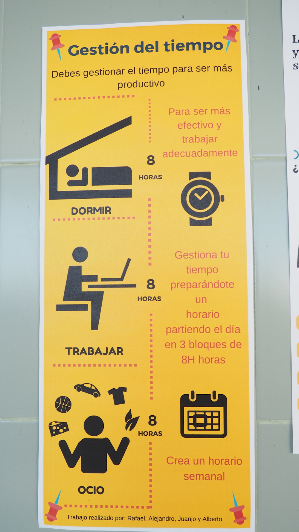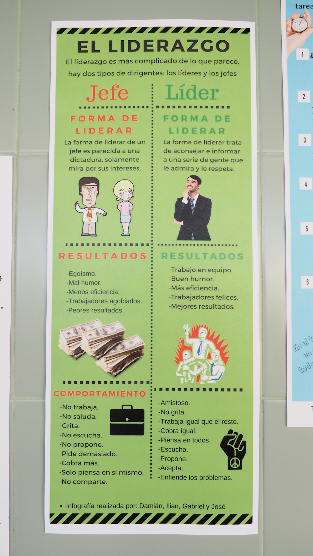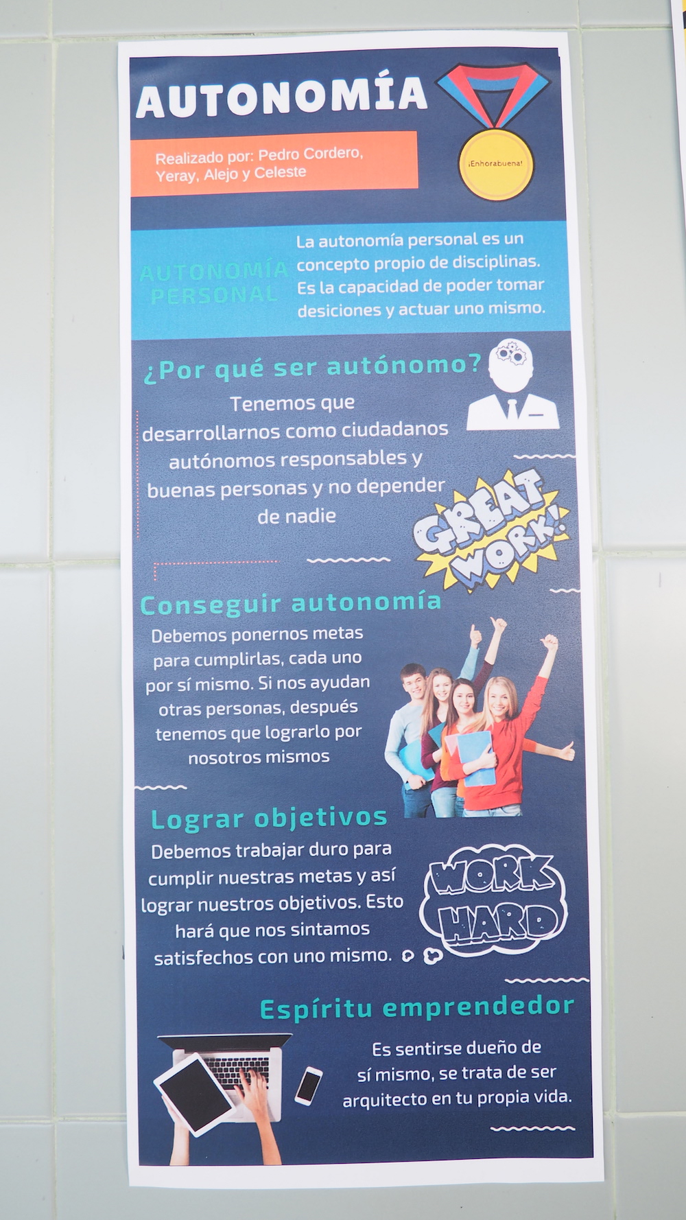 Al no haber dado antes esta materia debido a la implantación de la LOMCE, es considerada una materia del primer y segundo ciclo de la ESO, pero la hemos comenzado en 3º de ESO este año, por lo que he tenido que partir de cero y trabajar con el alumnado conceptos básicos, como son el trabajo en equipo, el liderazgo, la autonomía, la gestión del tiempo y la autoestima. Con estos conceptos básicos hemos debatido en clase, aprendido que hay que aprovechar el tiempo y organizarse, y con ayuda de diferentes charlas TED hemos comprendido estos conceptos, para asimilarlos más adelante en los próximos proyectos.