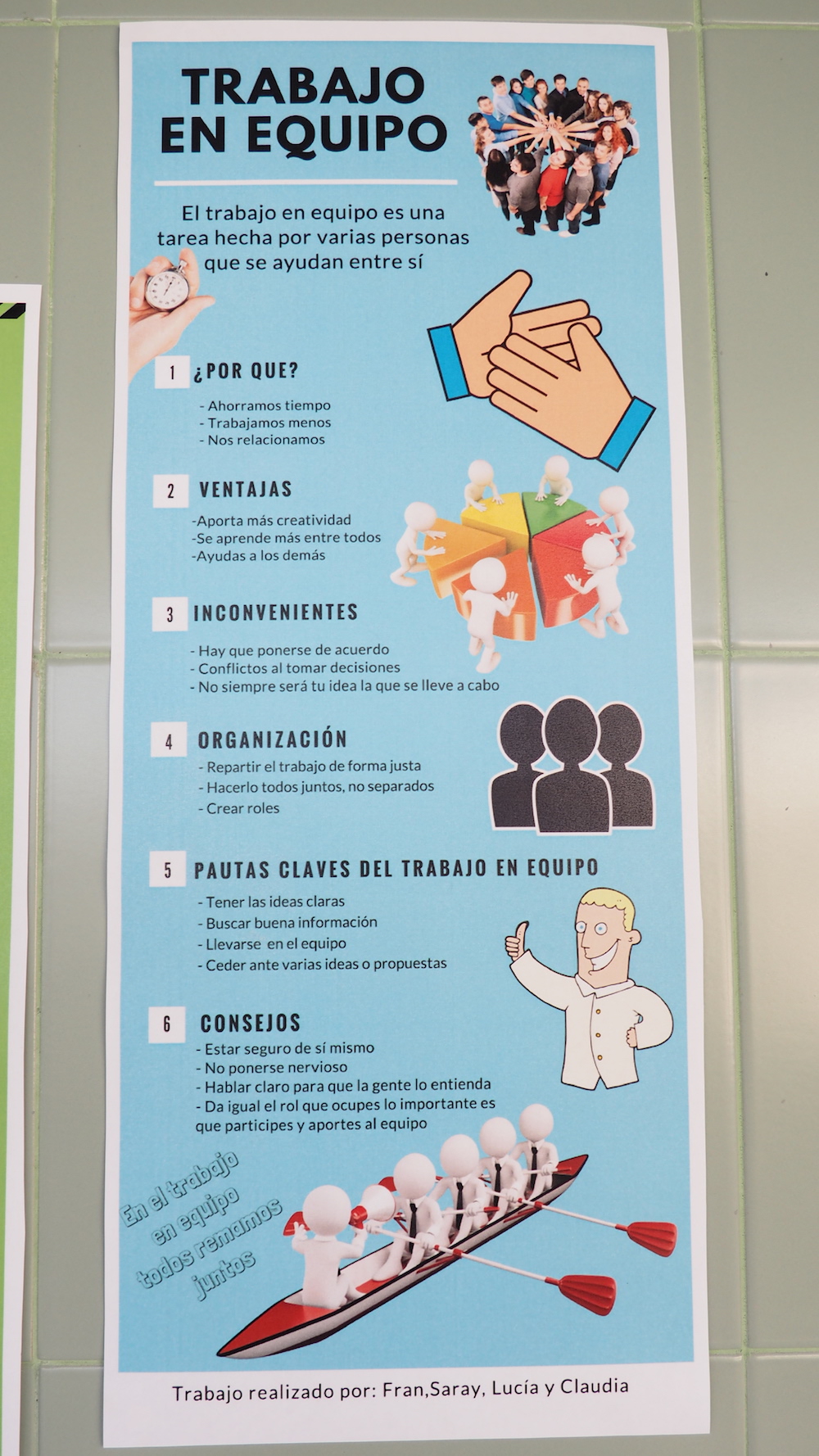 Nos ha llevado dos semanas su realización, un total de 4 sesiones, y después una quinta sesión para presentar y exponer las infografías en clase ante sus compañeros. En esta clase tengo una mezcla de los tres 3º de ESO que tenemos en el IES Cartima, y la verdad, que tengo alumnado de diferentes niveles y adquisiciones, pero lo que más me gusta ver, es la evolución de estos niños/as que llevo teniendo en clase 3 años y es algo que valoro mucho, porque nunca antes había podido tener tanta continuidad con el mismo alumnado.
