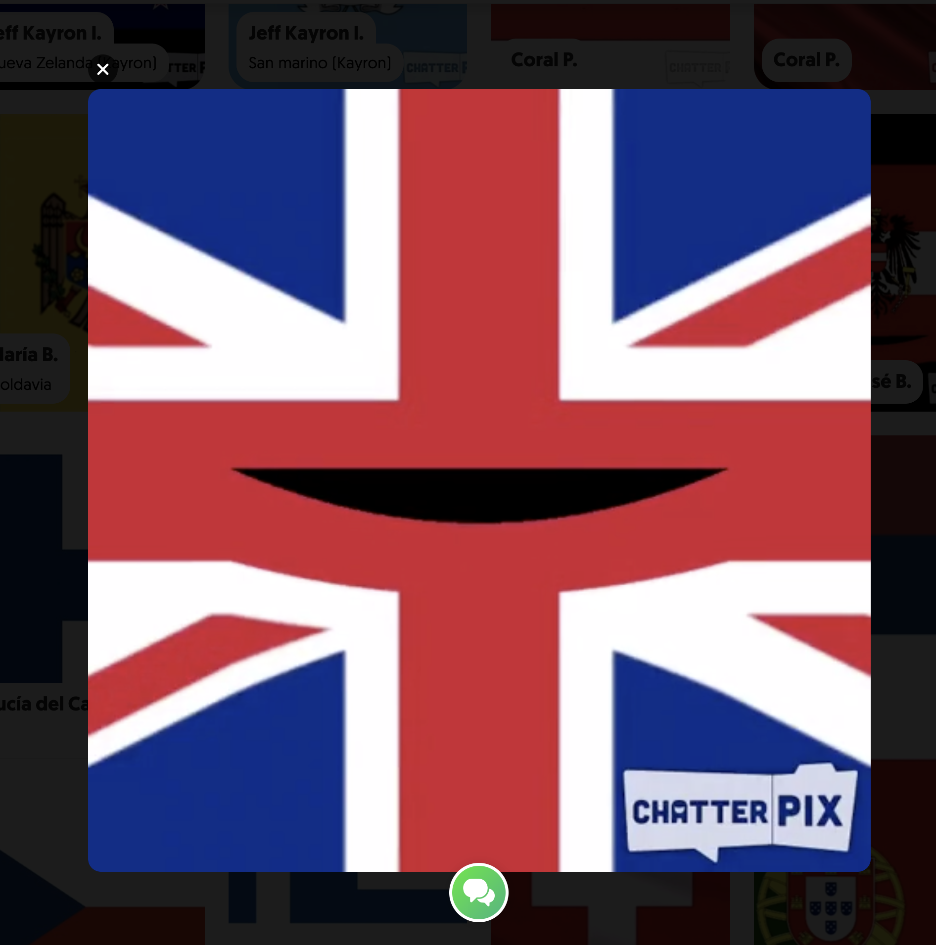 Una vez hecho el resumen procedían a grabar en la aplicación Chatterpix. La imagen que elegían para poner era la bandera del país del que tenían que hablar. Así, grababan en esta app como si fuera la propia bandera que habla con la información del país que habían documentado previamente.