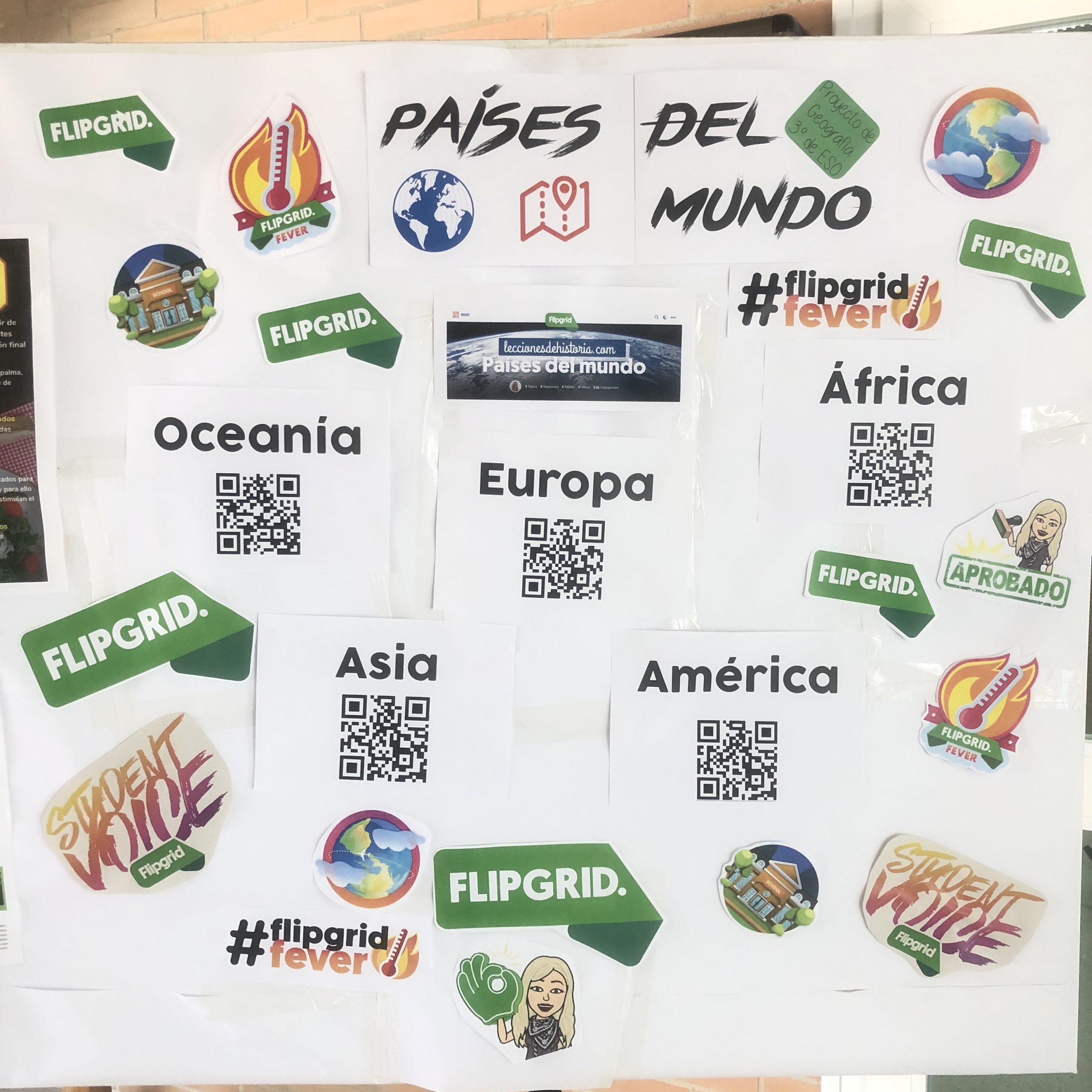 Finalmente procedí a imprimir los códigos QR de los enlaces de Flipgrid, que te lo da automáticamente, y diferentes imágenes tanto del proyecto como de Flipgrid.