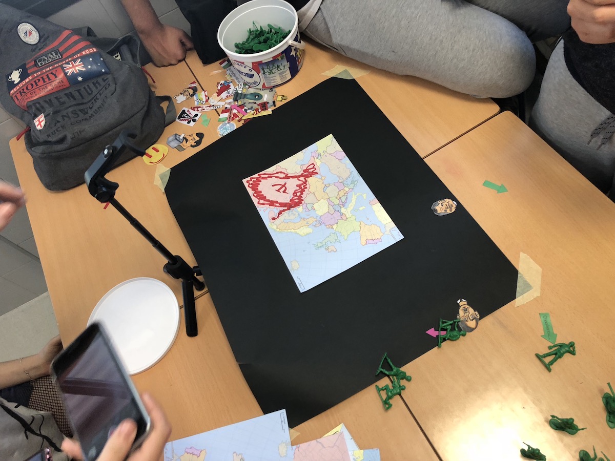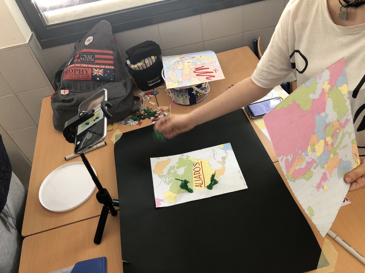 La preparación del vídeo llevaba previamente un guión que yo supervisaba, y la preparación de mapas y material que iba a aparecer en el vídeo. Un trabajo laborioso según me contaba mi alumnado, y que estaban comprobando de primera mano, que hacer un vídeo como los de WhyMaps, lleva mucho trabajo. Eso sí, con respecto al uso de la tecnología, solamente exige grabar con un dispositivo móvil y luego editar el vídeo si queremos mejorar voz, o meter efectos como ponerle marcha rápida. En nuestro caso, mi alumnado lo hizo con iMovie.