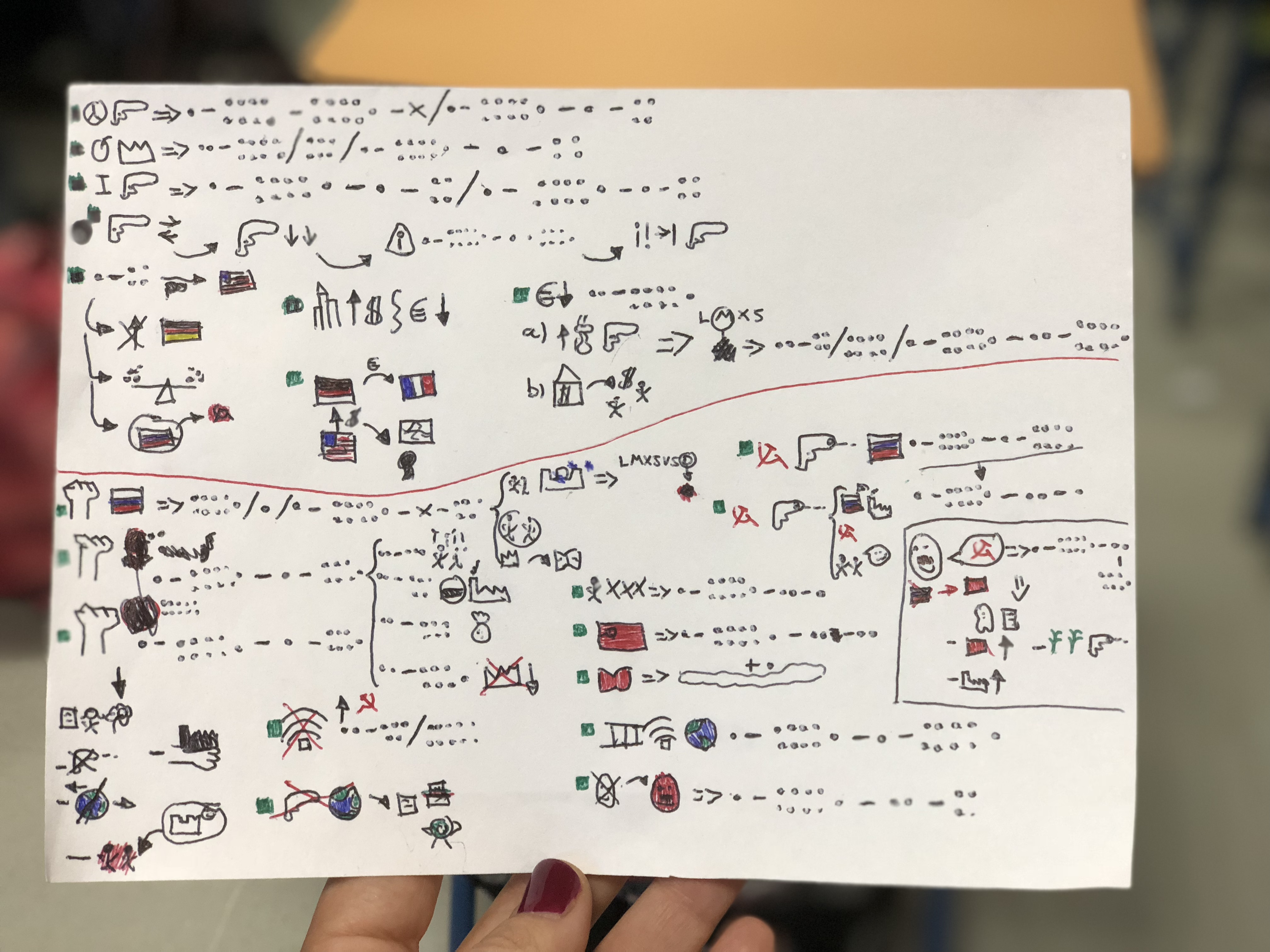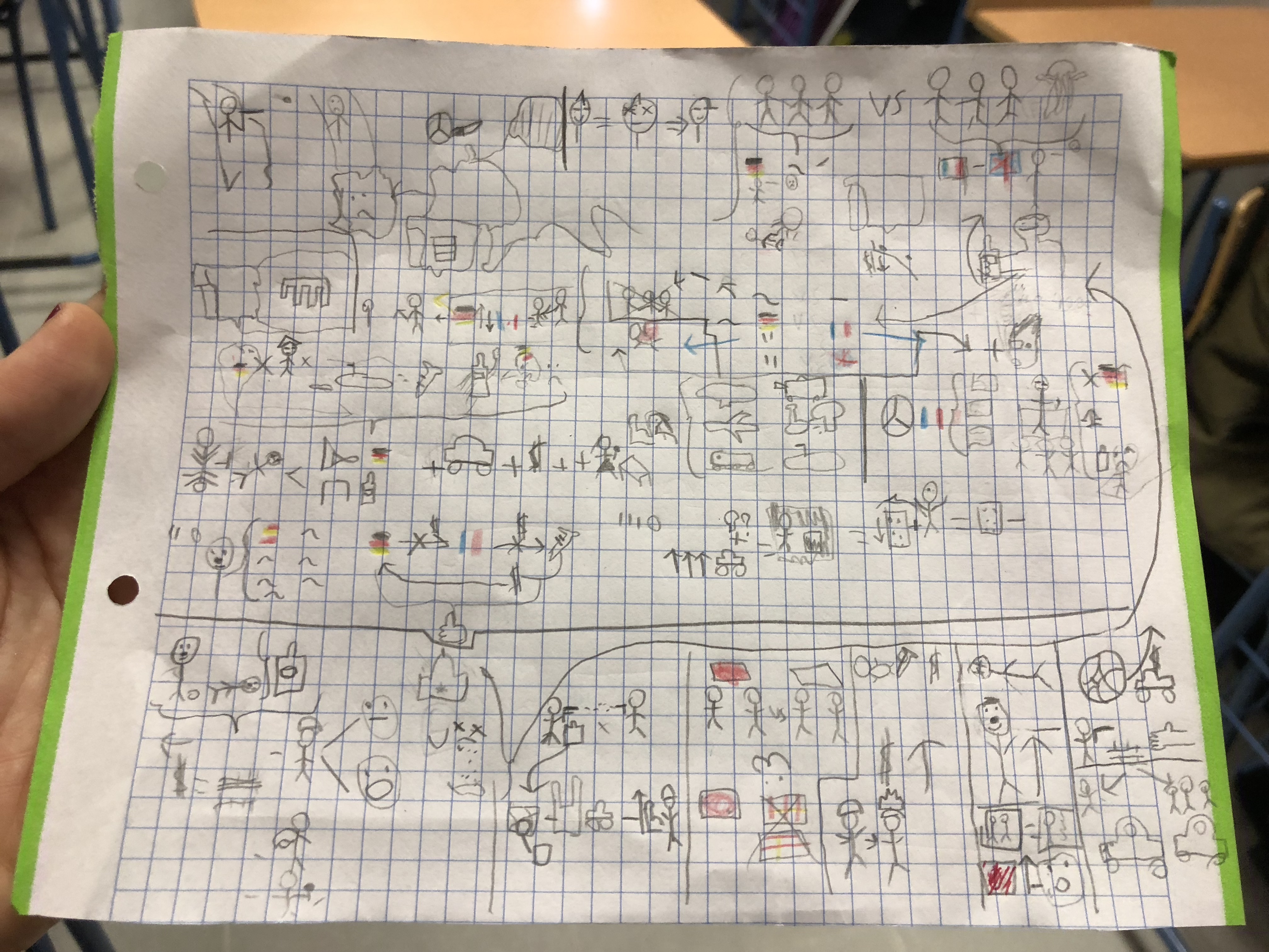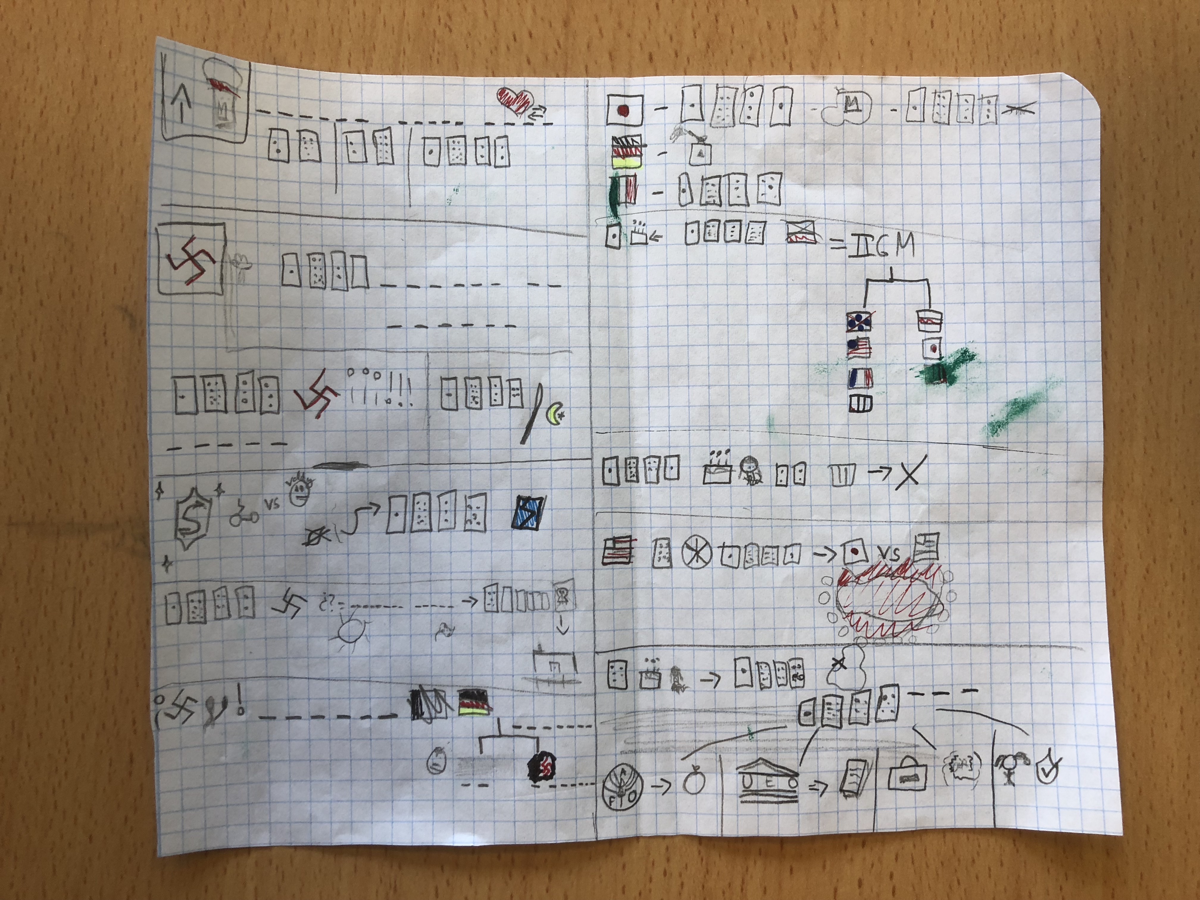 Así que un día llegué a clase, y lo que me encontré fue una propuesta por parte de ellos/as: «seño, ¿podemos traernos al examen escrito de la II Guerra Mundial una «chuleta» hechas con notas en Visual Thinking?». Cuando me hicieron la propuesta, me hicieron reír, yo creí que estaban de broma. Ellos/as insistieron, trataron de convencerme diciéndome que hiciera unas normas para la «chuleta» y que me atreviera.