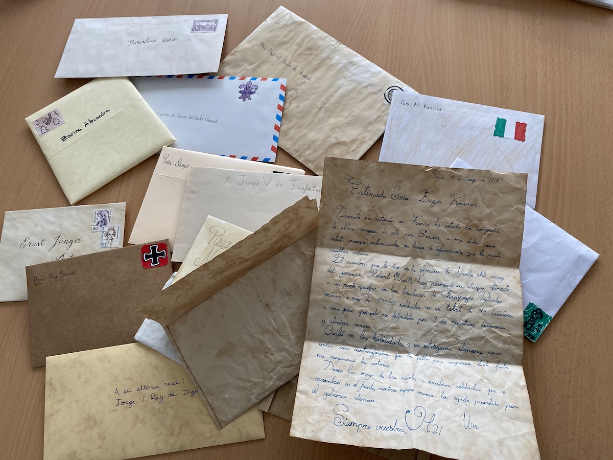 Con un proceso de investigación, y con la colaboración de mi compañero de plástica, que también se llama Fran jeje, nos pusimos en marcha para elaborar los papeles con aspecto envejecido para las cartas. Algunas cartas incluso llevaron fotos, o también sellos de cera. La verdad que el alumnado se lo «curró» muchísimo. Cuando descubrieron que muchos de los personajes existieron de verdad, esto les motivó aún más a investigar sobre sus historias.