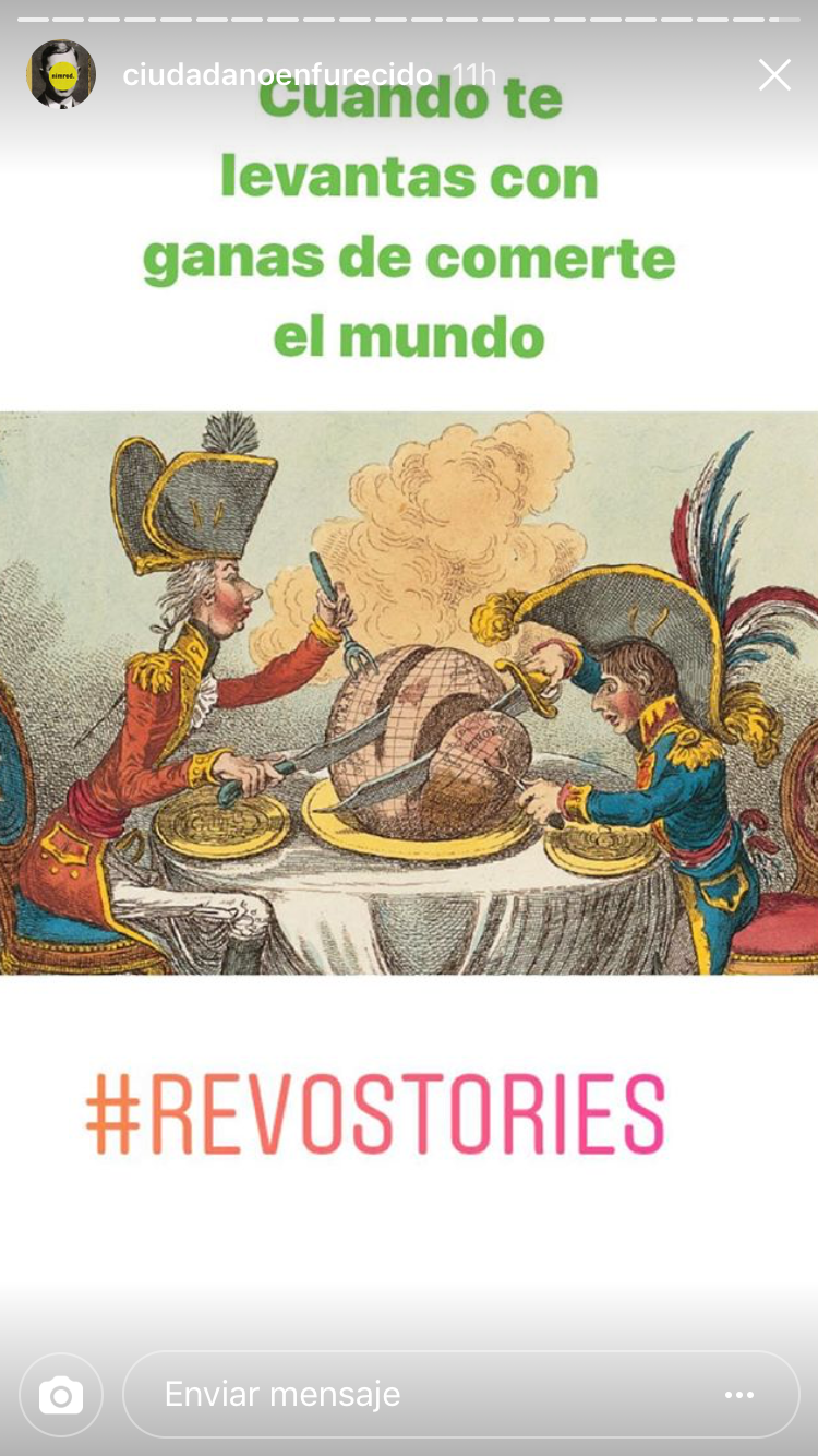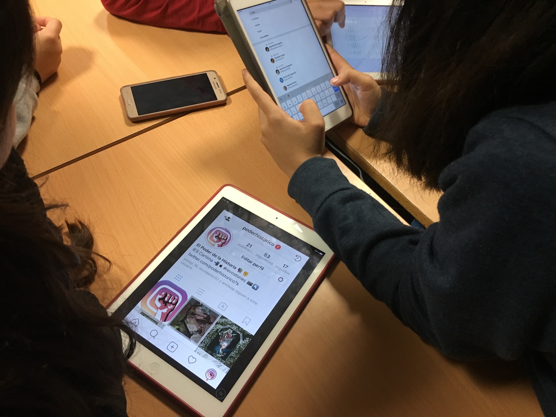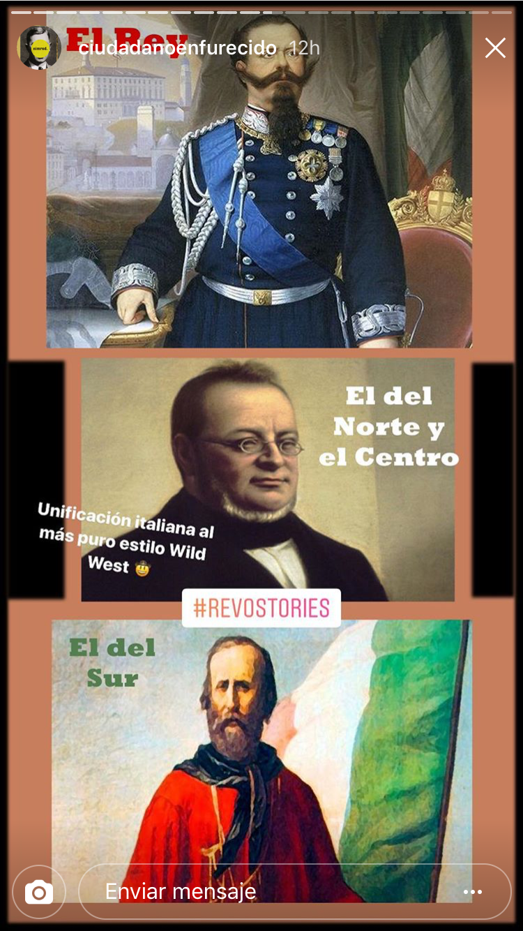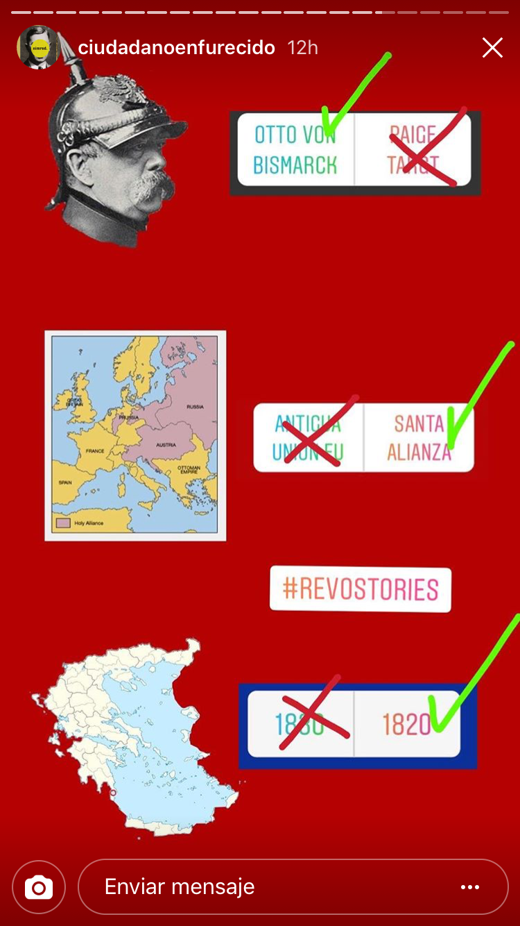 Por un lado tendrían que realizar una cuenta de Instagram por grupo, al igual que hicieron con Twitter. Así publicarían fotos históricas relacionadas con las unidades que habíamos visto y las revoluciones históricas. En este caso se trataba de realizar fotos originales y que atrajeran a los seguidores. A su vez, Isabel García, desde Madrid, también hacía su versión de proyecto con Instagram, por lo que nos pusimos en contacto. Así que entre el alumnado de ella y los míos, se fueron dando a me gusta y aprendiendo entre ellos gracias a las fotos de Instagram.