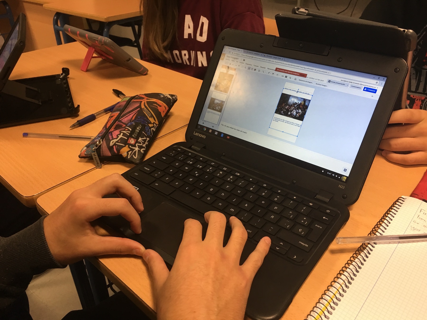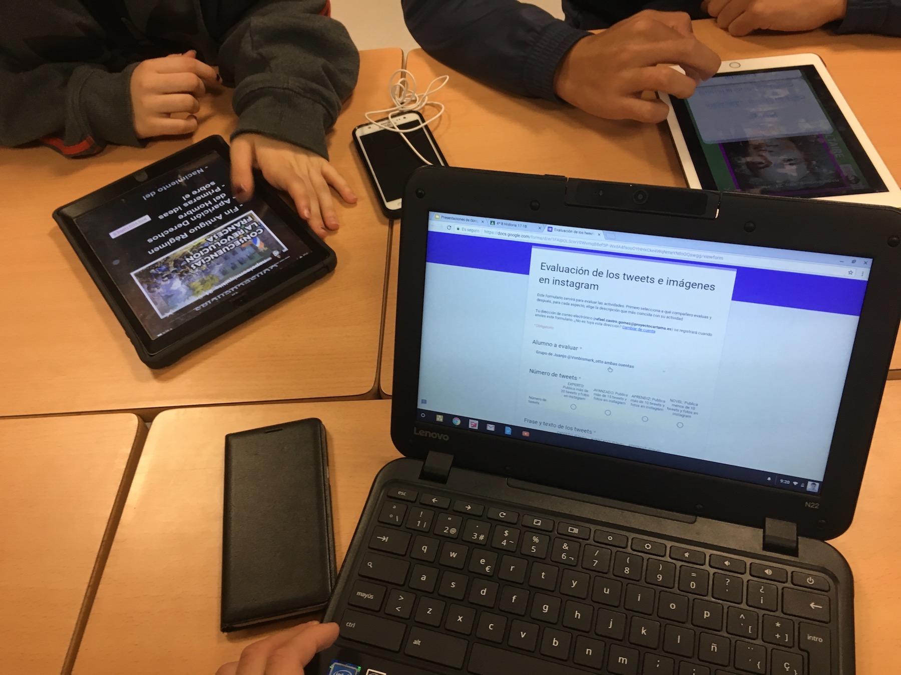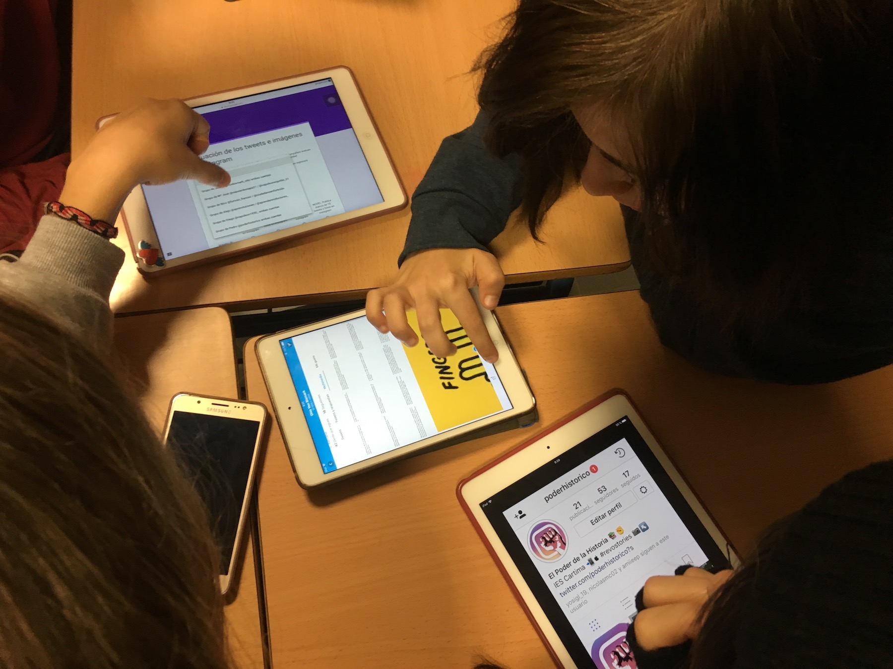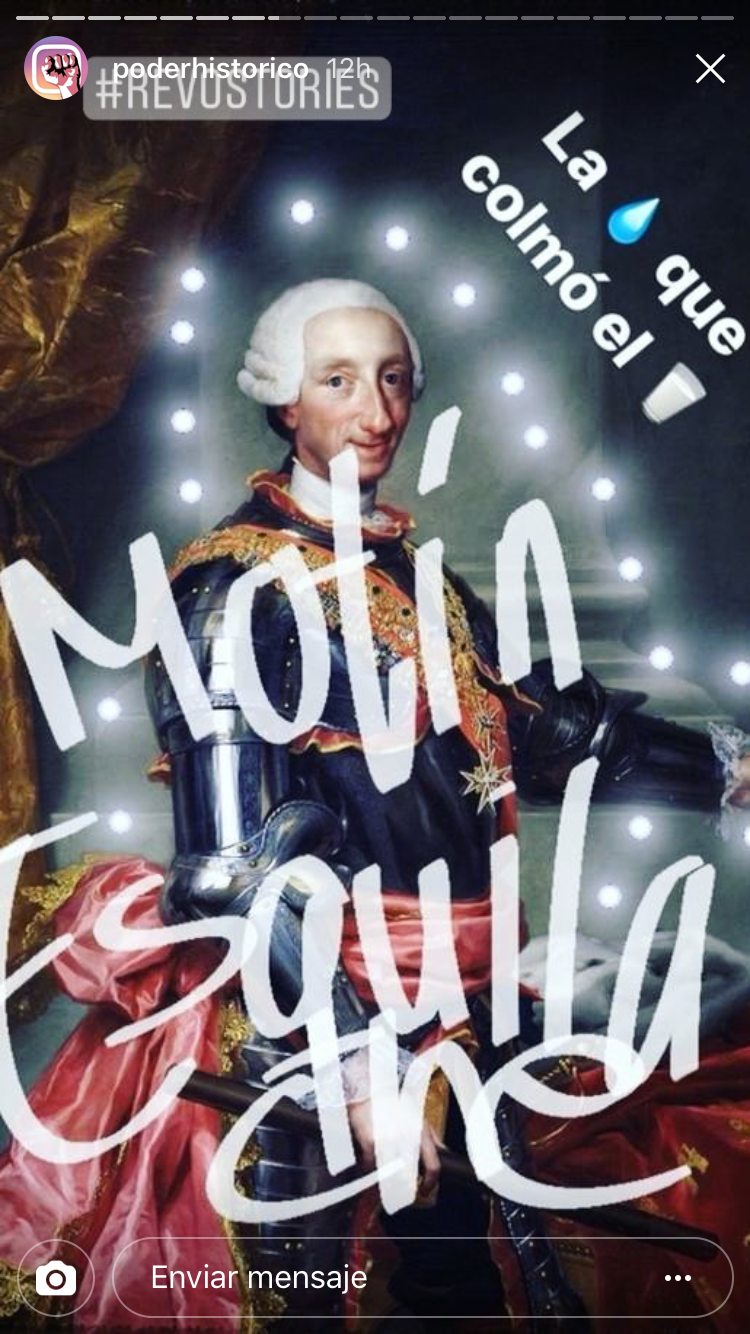 Por un lado tendrían que realizar una cuenta de Instagram por grupo, al igual que hicieron con Twitter. Así publicarían fotos históricas relacionadas con las unidades que habíamos visto y las revoluciones históricas. En este caso se trataba de realizar fotos originales y que atrajeran a los seguidores. A su vez, Isabel García, desde Madrid, también hacía su versión de proyecto con Instagram, por lo que nos pusimos en contacto. Así que entre el alumnado de ella y los míos, se fueron dando a me gusta y aprendiendo entre ellos gracias a las fotos de Instagram.