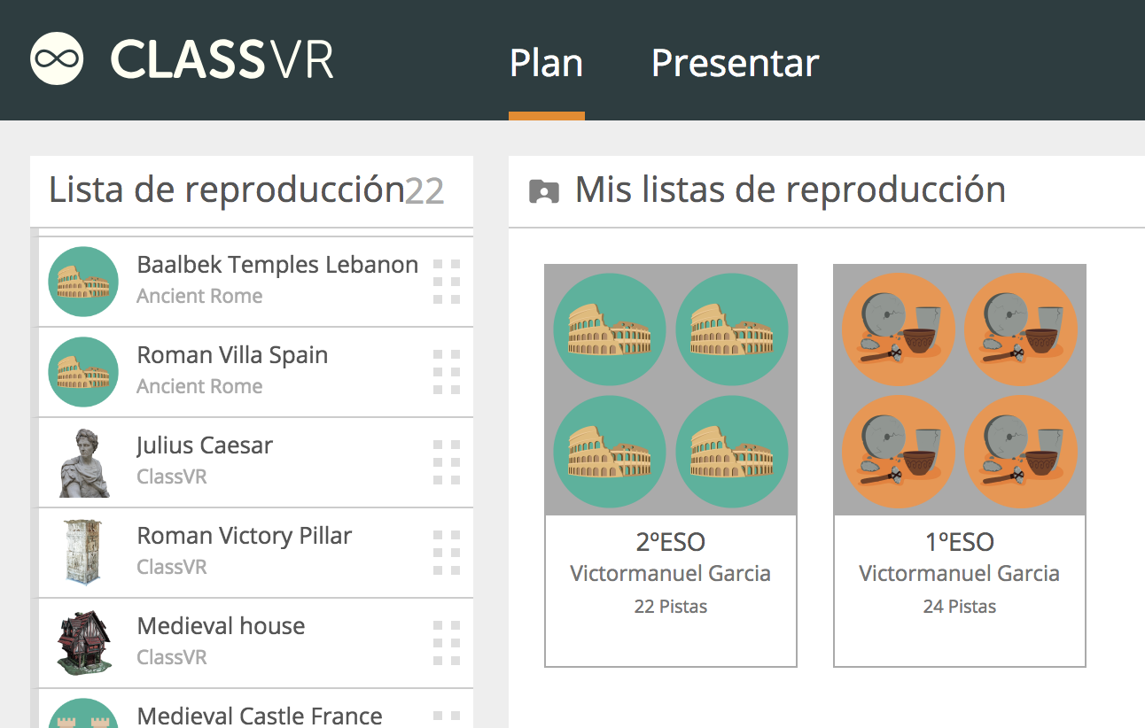 Os dejo capturas de pantallas de su aplicación desde el panel del profesor, que tomé para que veáis cómo es. De esta forma, lo que hice fue preparar las clases en las que iba a usarlas, en base a los contenidos que estábamos viendo. Aproveché así para aprender mejor historia del arte, usándolas en 1º, 2º y 4º de ESO.