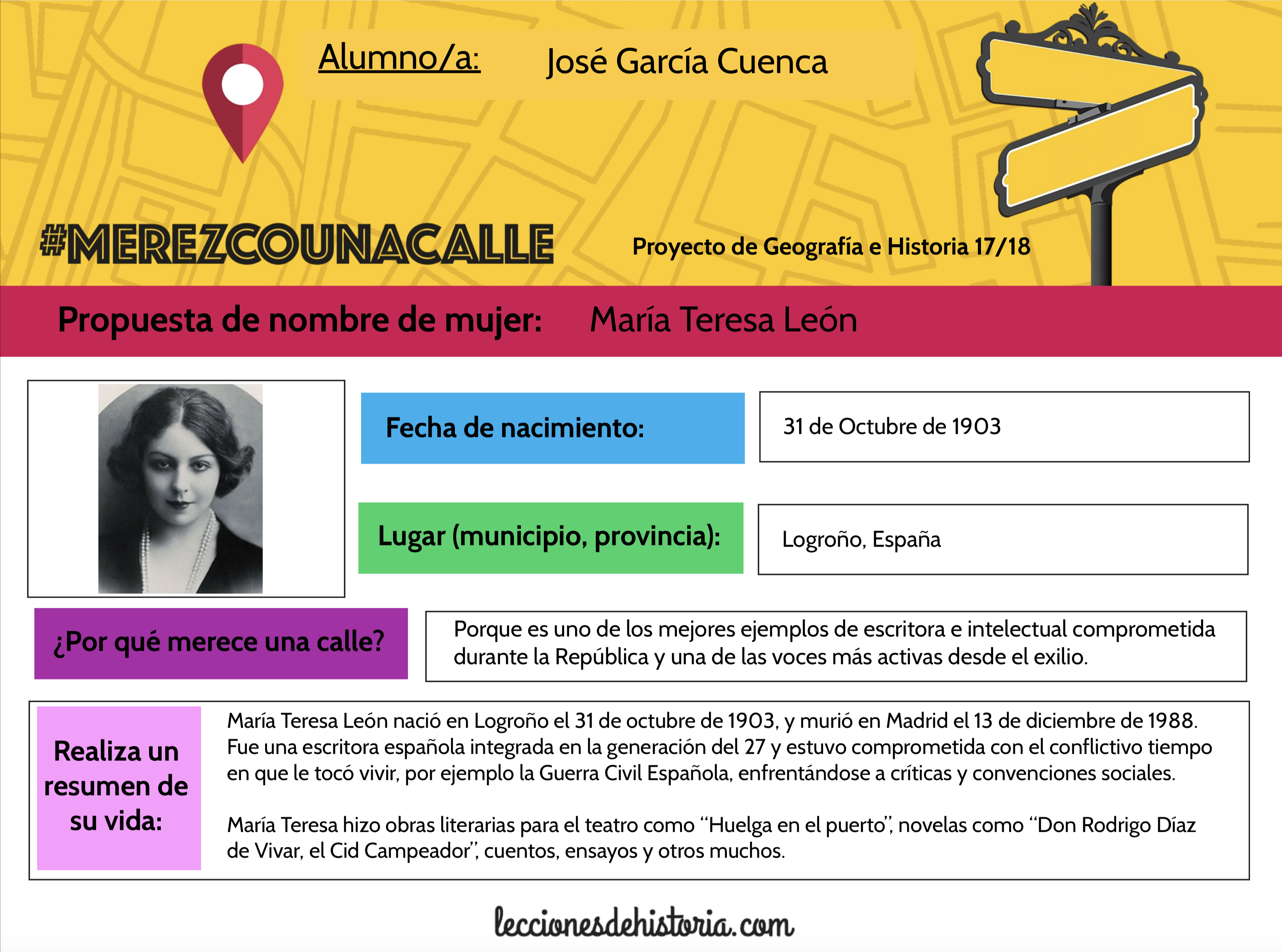- CALLE Mª TERESA LEÓN: escritora española integrada en la generación del 27.