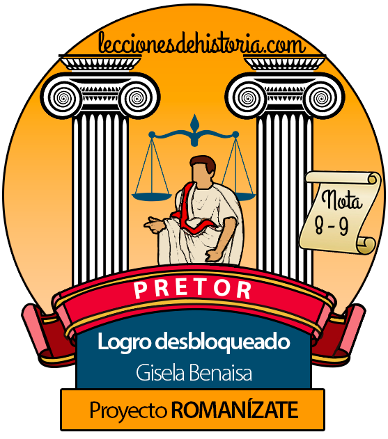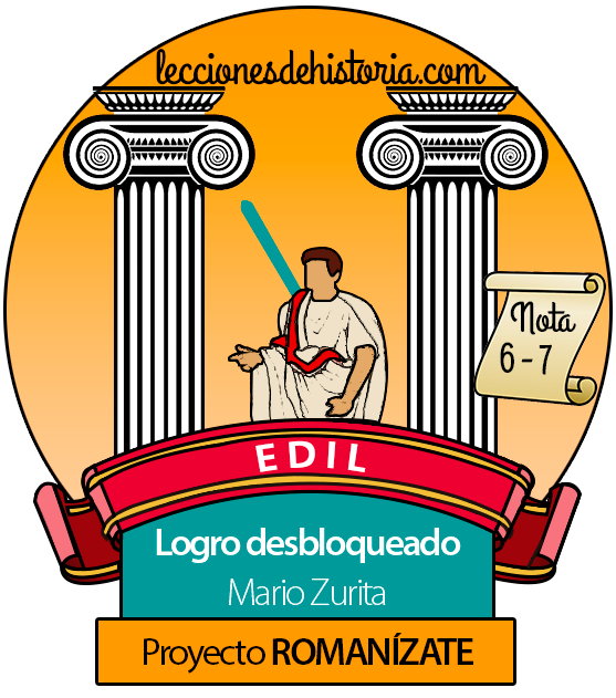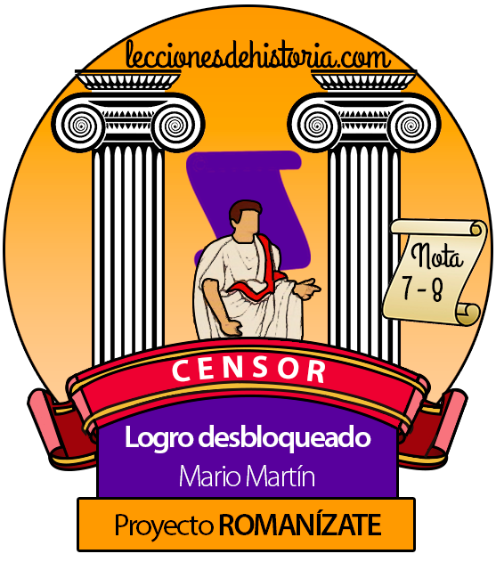 Finalmente, con la nota obtenida del proyecto, en este proyecto decidí hacer algo especial gracias a la idea que me aportó César Poyatos hablando los dos de Gamificación, y al diseño que me ayudó a hacer mi pareja de estas insignias, Cento Salvi, gracias a los dos por sacar la idea adelante. Diseñamos unas insignias según las notas que obtenían, basándonos en las magistraturas romanas, cada insignia iría con el nombre personal del alumno/a para que lo cuelgue en su blog personal, quedando de esta forma: