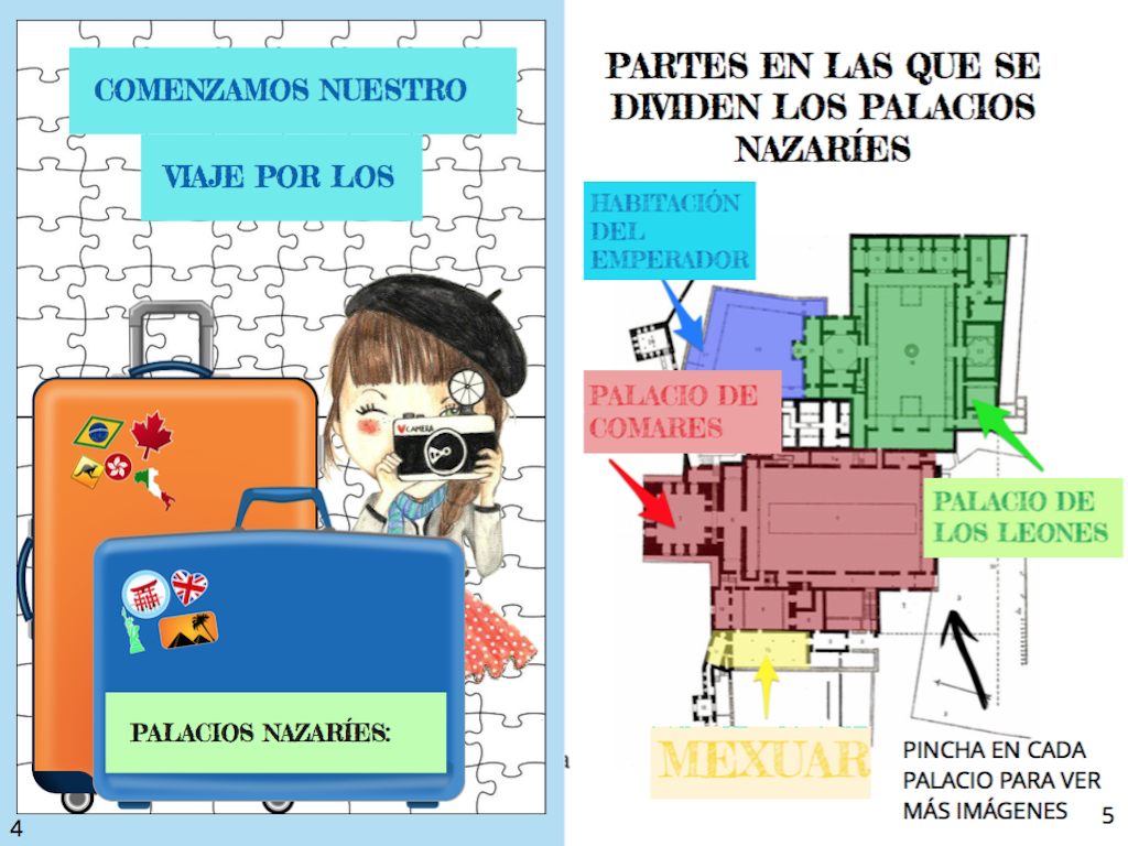 Para ello, diseñé que el alumnado realizara una guía turística digital e interactiva para niños sobre la Alhambra, en el que cada clase, tenemos tres líneas en el centro, haría una guía entre todo el alumnado de cada clase.