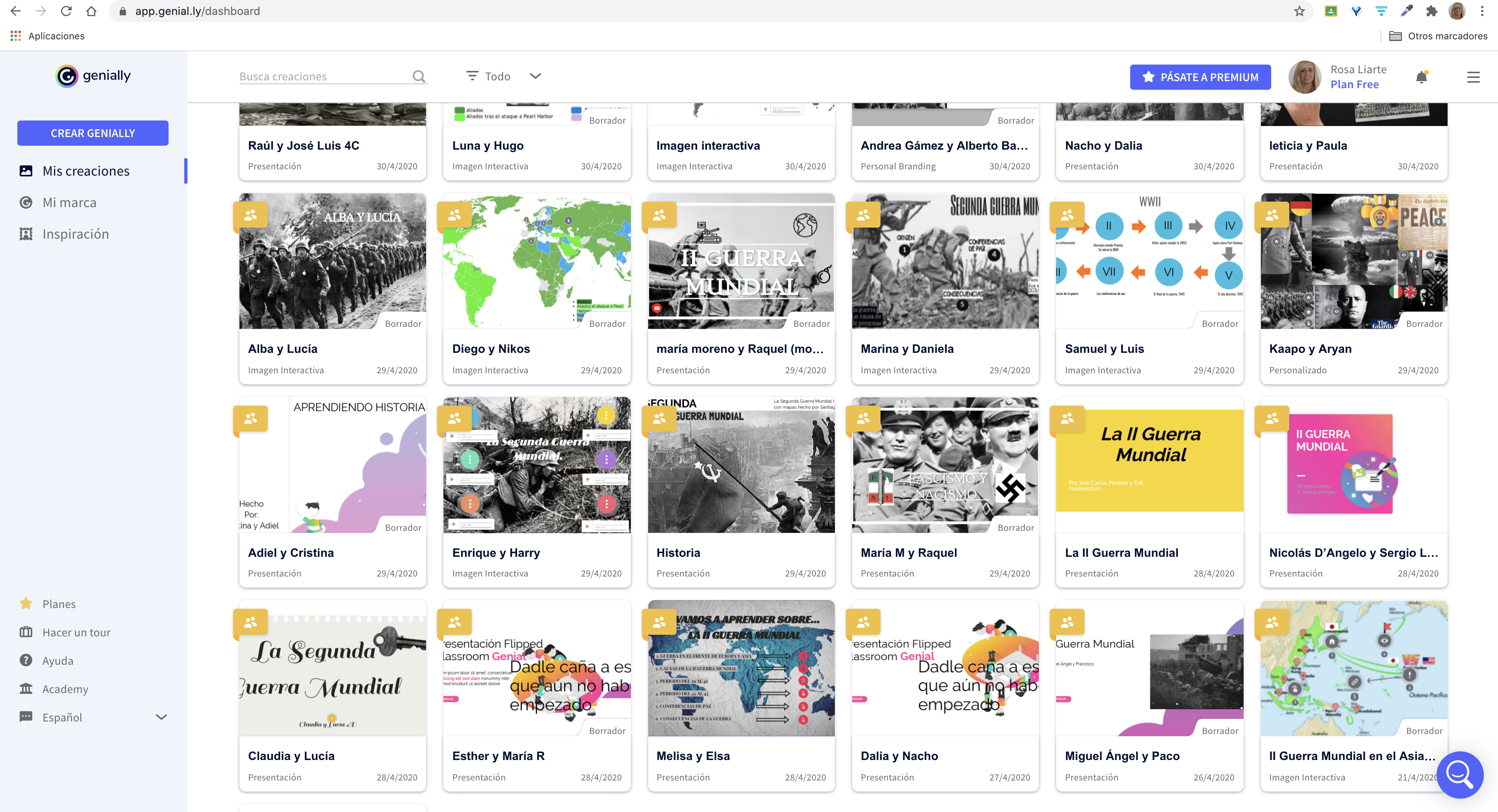 Previamente, traté con mi alumnado los dispositivos con los que contaban. Dediqué una clase online a explicarles cómo funciona Genial.ly, y dejé la clase grabada para quienes no se pudieron conectar. Les indiqué que un miembro del grupo tenía que crear un genial.ly y compartirlo conmigo y con su compañero/a.